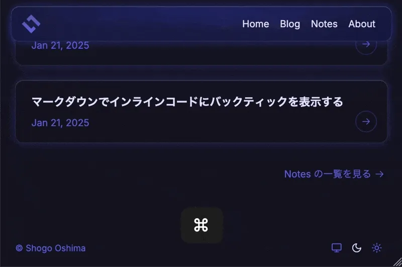 最近のいい感じのウェブアプリケーションやドキュメントでは、よく ⌘K で検索したり、コマンドを実行できたりしますよね。